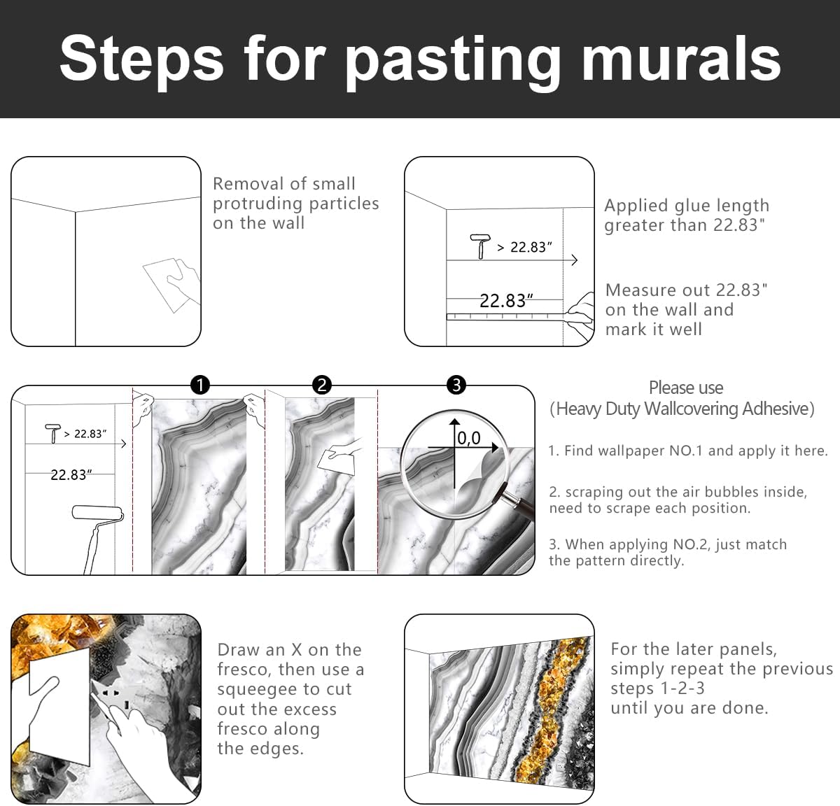 - 💕Wallpaper installation can refer to our main picture, the package will also be placed inside the installation instructions.
